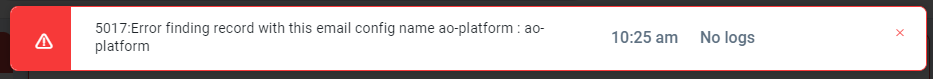 For the Share Page option to be sent via email, the AO Platform must have SMTP email integration enabled in the Admin Solution. If the SMTP email integration is not enabled, the user will receive an error-message like this: