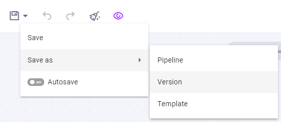 A user can explicitly save one or more designs/configurations as a Version using the Save as option in the Header of the Composer.