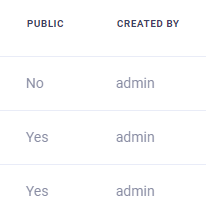 The first item is Private, the second/third items are Public (shared) - all three objects created by “admin”.