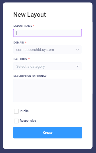 Select if you want to create the new Layout as Public and/or Responsive