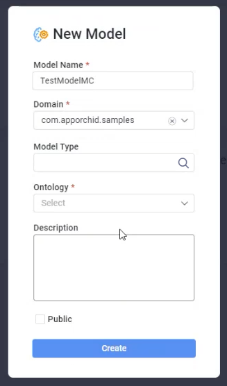 Public - check the checkbox to make the ML Model available to other users of the Model Composer.