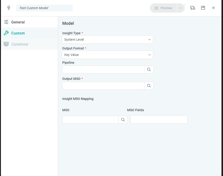 Output MSO | Select an MSO from the Search dialog which will provide the output features to this Insight. |