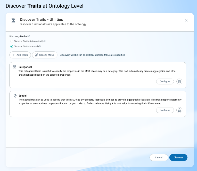 Discover Traits Manually - configuration can be done for properties that are associated with specific Traits and MSOs selected.