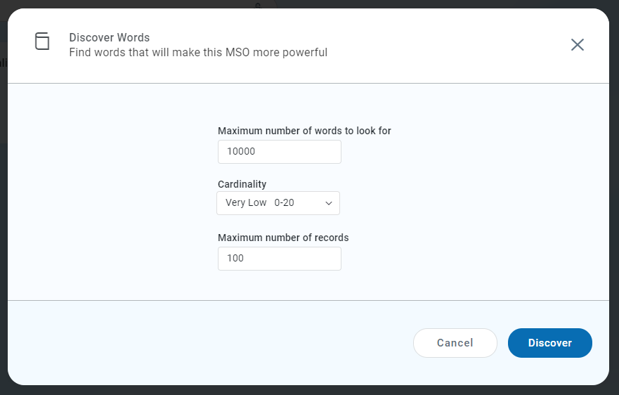 Maximum number of words to look for | Number | 100 | Maximum number of words the discovery process will consider. |