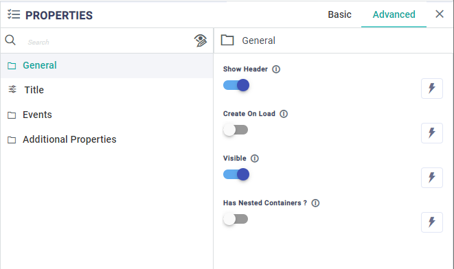Basic / Advanced - select between mandatory (Basic) properties and many additional properties (Advanced) for ultimate flexibility.