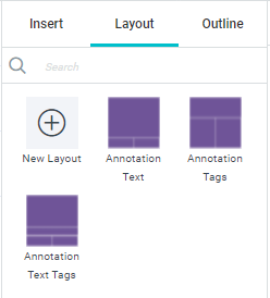 Use options in the left-side panel to insert various types of Annotation components into the Layout cell(s), as well as updating any Layout organization, and/or to see a quick Outline.