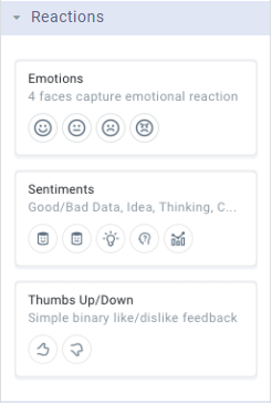Reactions - this category of Annotations makes it easy for a user to express a reaction to something, including the use of Emotions (using emoticons), Sentiments, Thumbs Up/Down