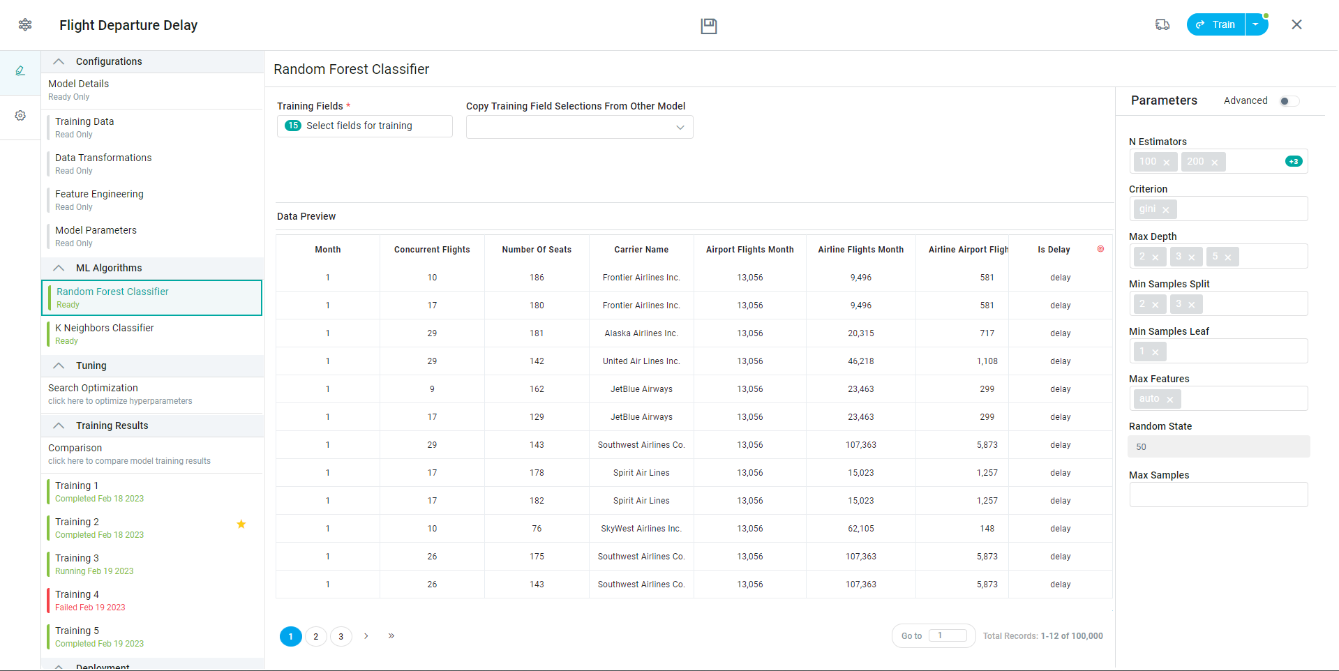 All properties are prepopulated with the default values - see links for each of the ML Algorithms in the table below.