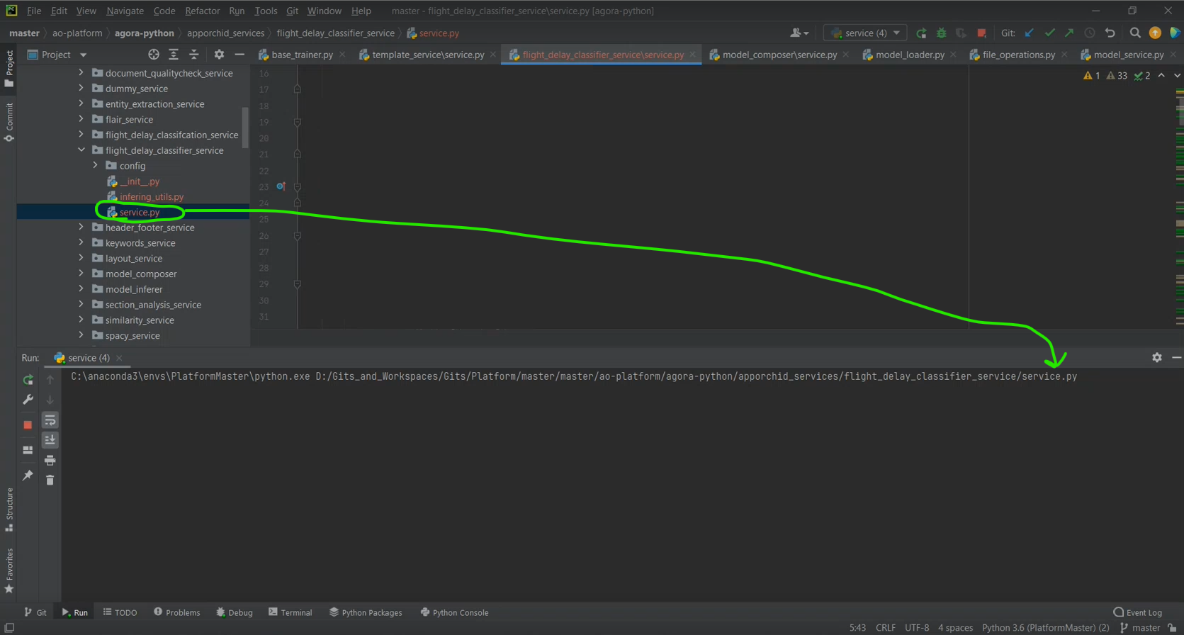 The Deployed Model will need to be started as a Service before we can test that the Model is executing correctly. In the folder of the server that the Model was deployed to, simply run the service.py file to start the Model-as-a-Service.