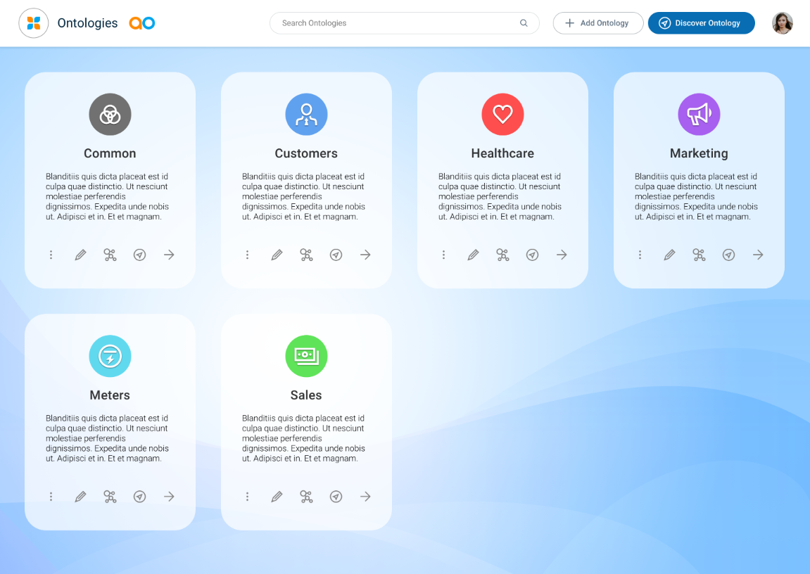 When first opening the Ontology Composer, the user will see one or more existing Ontologies. All aspects of creating new Ontologies as well as managing existing Ontologies start from this page.