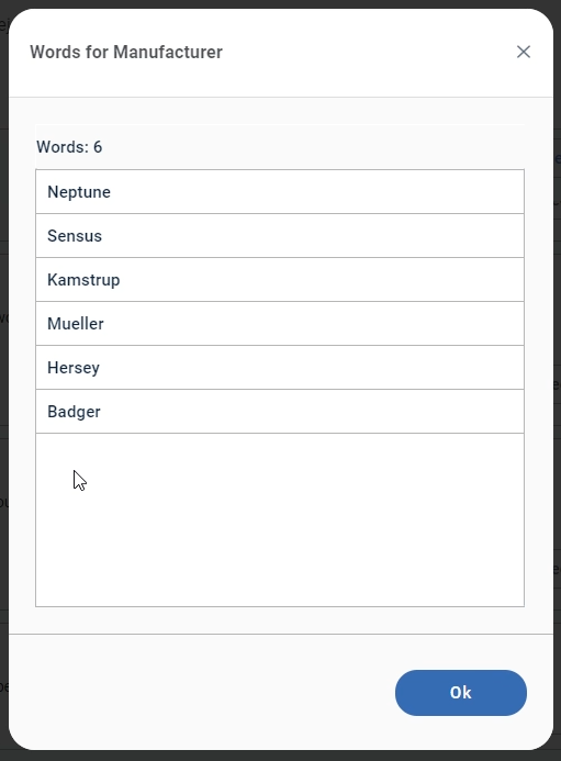 WORDS - that can be used when asking Natural Language Questions of the data using the Easy Answers solution.